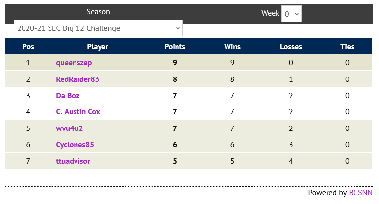 BCSNN 2020-21 SEC Big 12 Challenge | Champion: queenszep