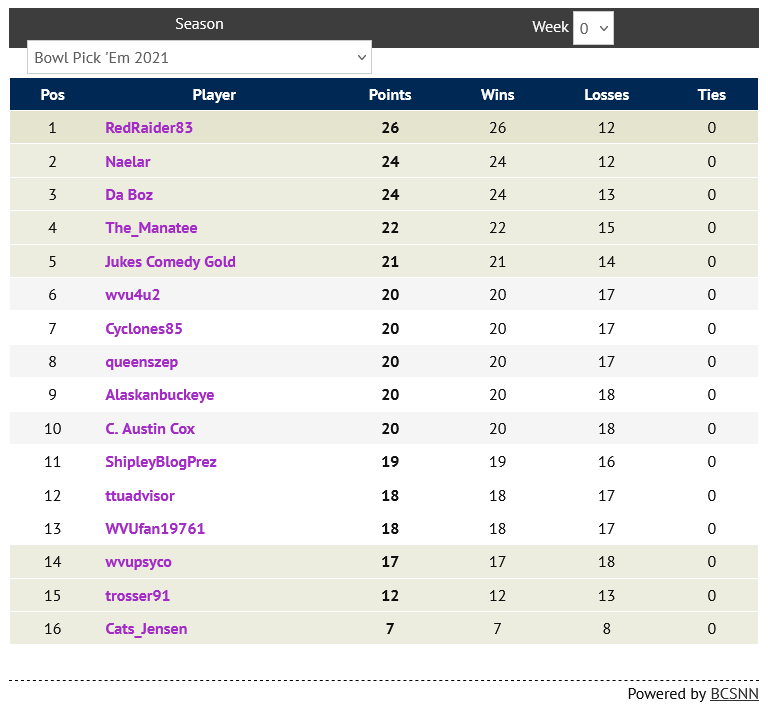 BCSNN 2021 Bowl Pick 'Em | Champion: RedRaider83