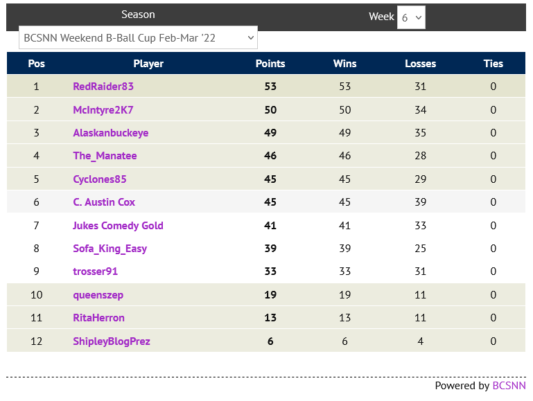 BCSNN Weekend B-Ball Cup 2022 | Champion: RedRaider83