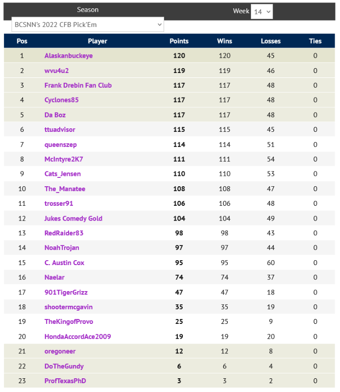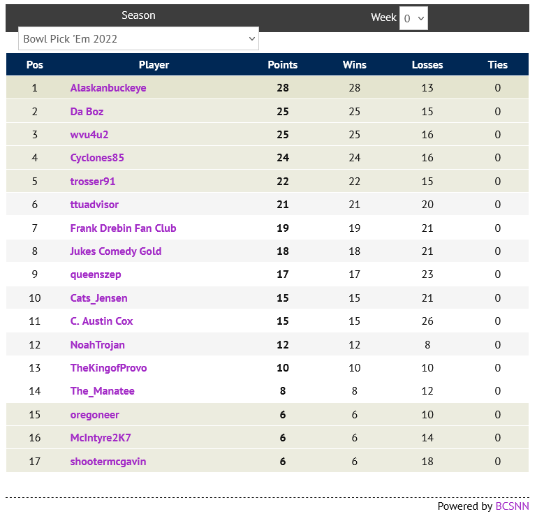 BCSNN 2022 Bowl Pick 'Em | Champion: Alaskanbuckeye